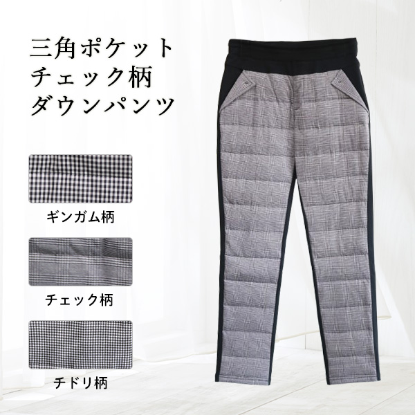 三角ポケットチェック柄ダウンパンツ [戻る]