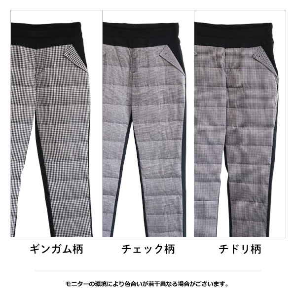 三角ポケットチェック柄ダウンパンツ [ZK1079]