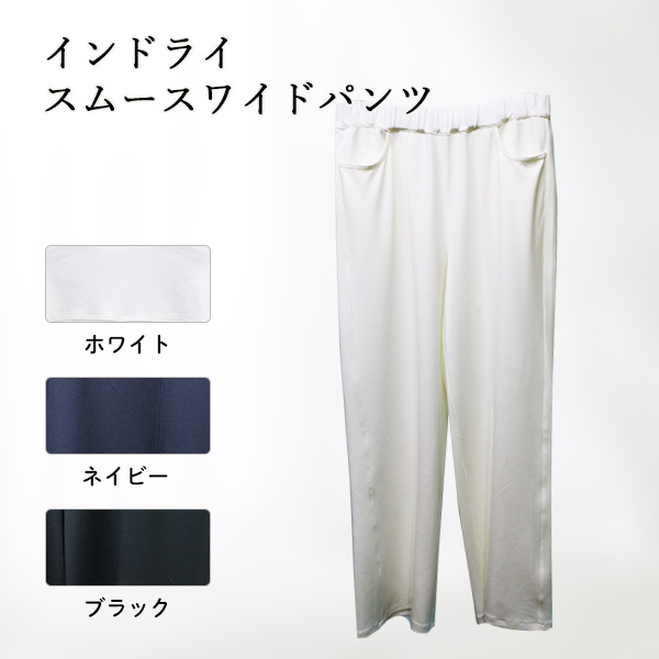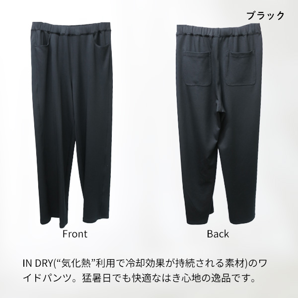 IN DRY(“気化熱”利用で冷却効果が持続される素材)のワイドパンツ。